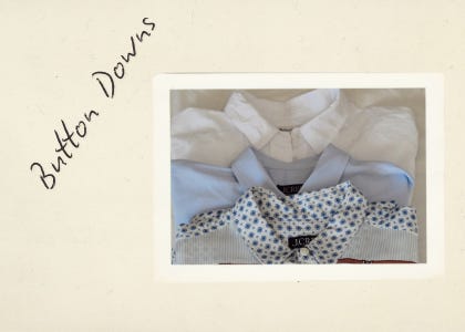 Links: Blue oxford shirt, Blue oxford shirt (less expensive), White button up, White button up (less expensive), Patterned button up (similar) - I’ve had my eye on this one for a while