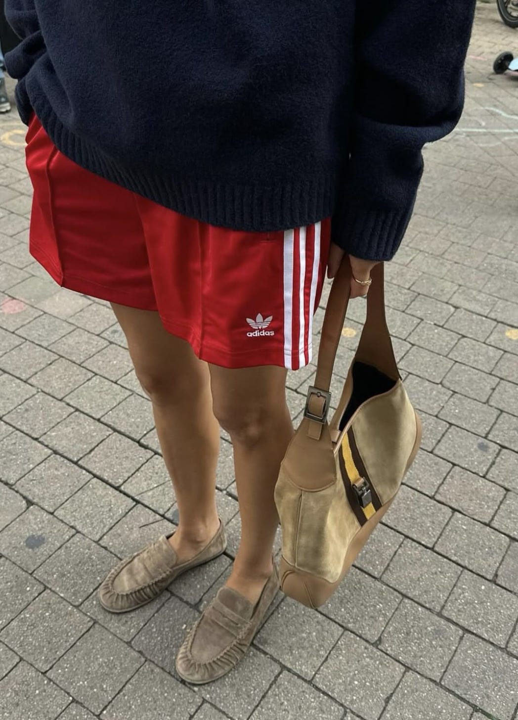 , rocking her shorts and loafers in her most recent post!5 - Sporty Shorts Meet Sporty Pants (Shorts continued…)