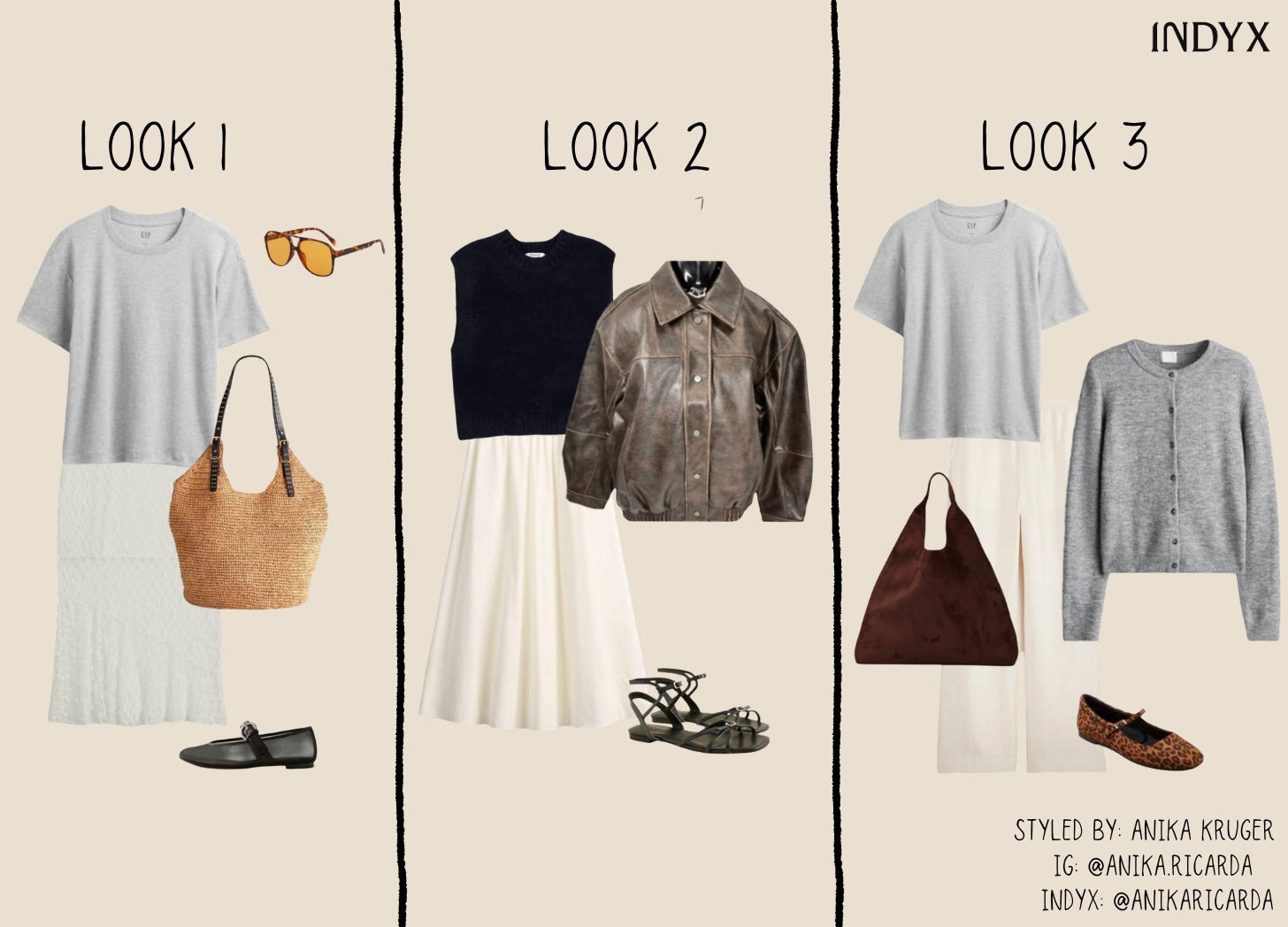 Before buying them, I used Indyx to make sure I could style them a few different ways in my current wardrobe. Here’s what I came up with: