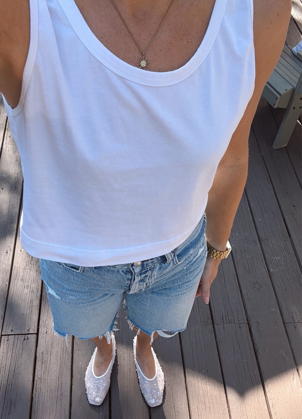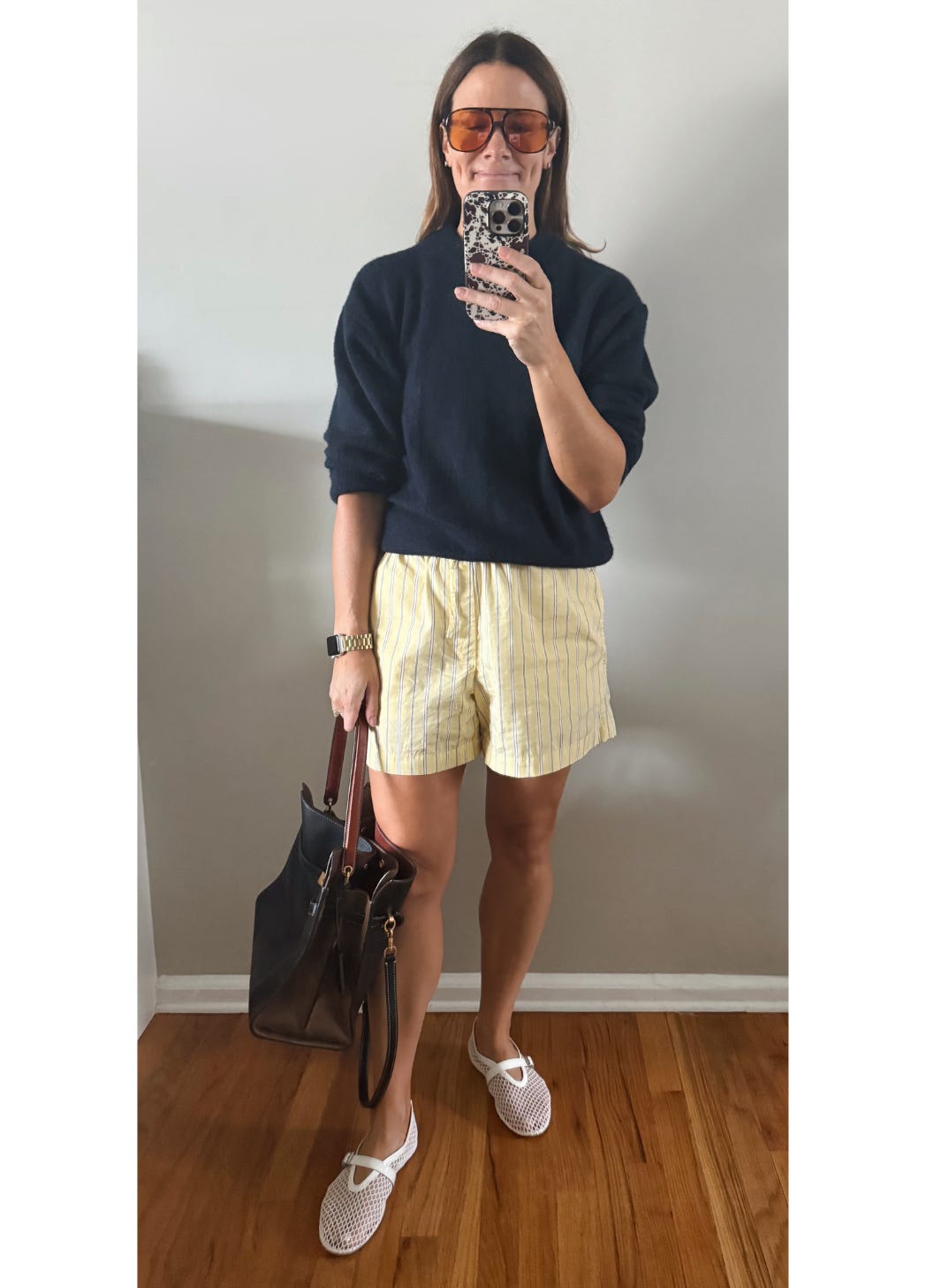 My Four-Shirted-Husband rocks shorts year-round. I plan to aggressively follow suit (until my legs get chilly). Shorts with ballet flats, mules, loafers, cowboy boots, and sneakers. YES, please.