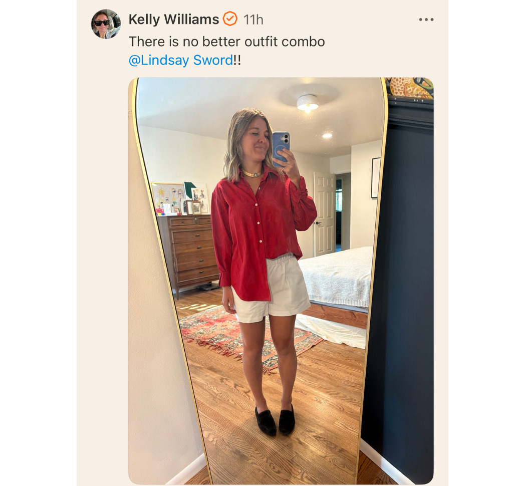 posted this note, beautifully sporting loafers + shorts.Also spotted in the Substack wild,