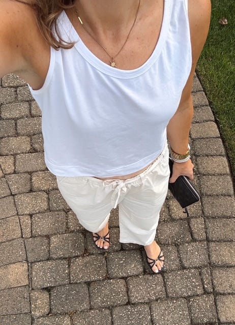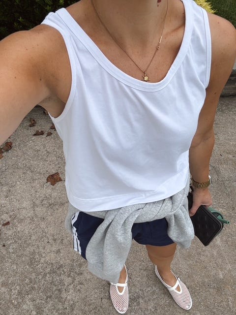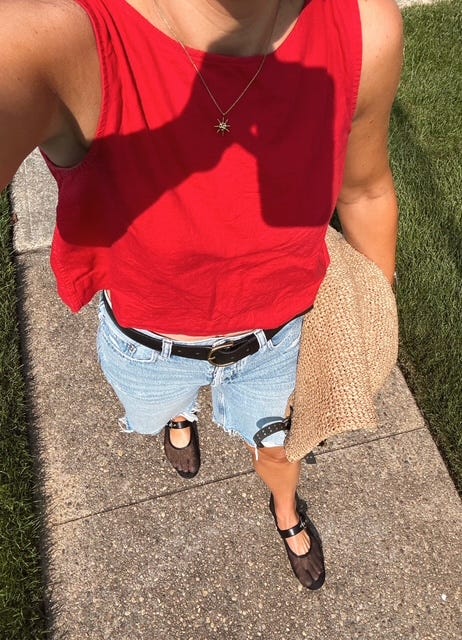 I wore those mesh ballet flats, white tank and jorts on REPEAT this week. And honestly, I’m not even mad.