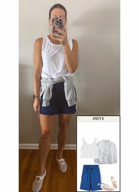 Style Notes: Ivory, black, and blue my go-to trio. Forgot I had these shorts….shout out to my Indyx app for reminding me.